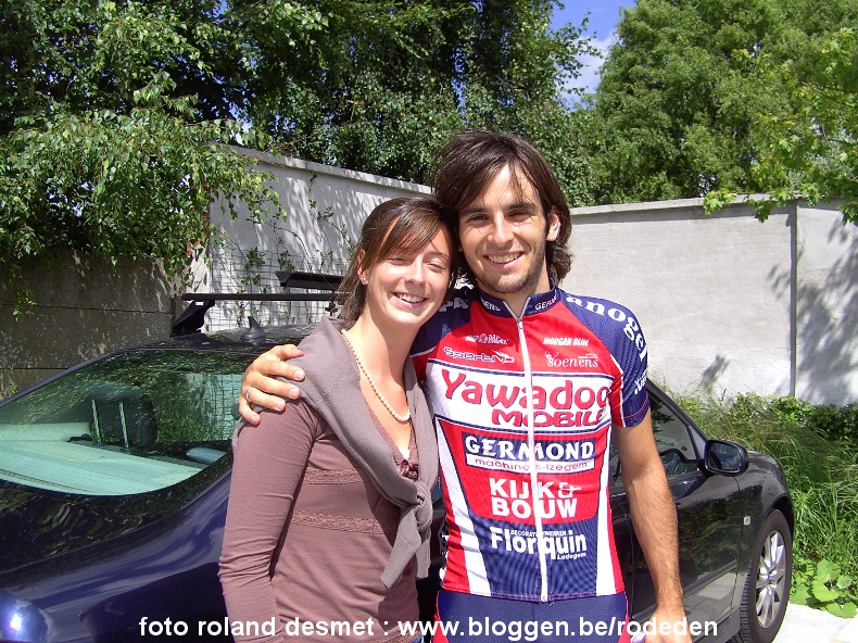 aan de start met toenmalige bondcoach Rony Vanmarcke....( renner met blauwe helm Tom Steels)