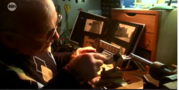 1996 In de Munkendoornstraat staat het atelier van een gitaarbouwer. Aan de muur prijken een zeldzame Gibson Hummingbrid het befaamde Everly Brothers model en een peperdure Martin folkgitaar, beiden klaar om opnieuw vernist te worden. Hugo doet zijn eigen creaties, het doet weinig toe wat het financieel rendement is, hij word er emotioneel rijker van. In 1978 ruilde hij Beauvoorde voor een huisje te Rollegem, wat eens zijn hobby was doet hij al vijftien jaar professioneel: gitaren bouwen en herstellen. Op zijn zestiende begon hij gitaar te spelen. Toentertijd bestond amper muziekacademies en ging hij in de leer bij privélesgevers. Algauw had hij door dat hij geen getalenteerd musicus was, hij hield zich meer bezig met knutselen aan het instrument dan met spelen. Gitaren bouwen kan men niet leren op school. Enkel in Duitsland en in Engeland bestaat er onderwijs voor instrumenten bouwers. In zijn atelier staan allerhande werktuigen, die hij her en der op de kop kon tikken. Een droominstrument was b.v. een driepikkel. Een oude tekentafel welke hij van de schroothop gered had. Bovenop de driepikkel staat een beweegbare ijzeren bol , die hij met een hendel kan vastzetten. Op die bol had hij een houten balk gevezen. Daarop kan hij de hals van een gitaar vastmaken en in alle richtingen draaien, volgens de noden van het werk. Hij herstelde gitaren voor den brode maar zijn eigen creaties zijn, zijn kinderen.