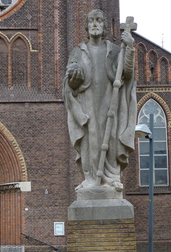 Christus Koning-beeld bij de ingang van de Sint-Bonifatiuskerk in Leeuwarden