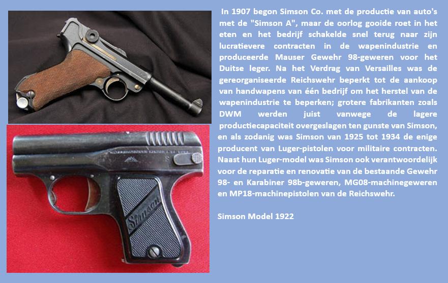 Het bedrijf had een grote groei doorgemaakt: van 20 werknemers in 1855 naar 1.200 in 1904 en 3.500 in 1918. Daarmee was Simson & Co. een van de grootste werkgevers in Suhl. In 1919 was de kleine staalfabriek dan ook uitgegroeid tot een enorm nieuwbouwcomplex, en tevens was een fabriek in Berlijn geopend. Tijdens de Eerste Wereldoorlog produceerde het bedrijf geweren en het Luger P08 pistool. Na de oorlog moest de wapenproductie beëindigd worden, maar het vredesverdrag van Versailles bood de mogelijkheid om in 1925 een contract met de Reichswehr af te sluiten voor de levering van lichte machinegeweren.