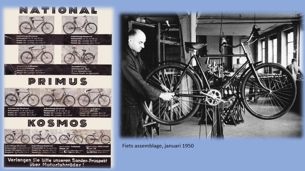 Al vóór 1945 en vanaf circa 1948 tot eind 1952 produceerde het bedrijf fietsen van de merken National en Primus , evenals losse fietsonderdelen.