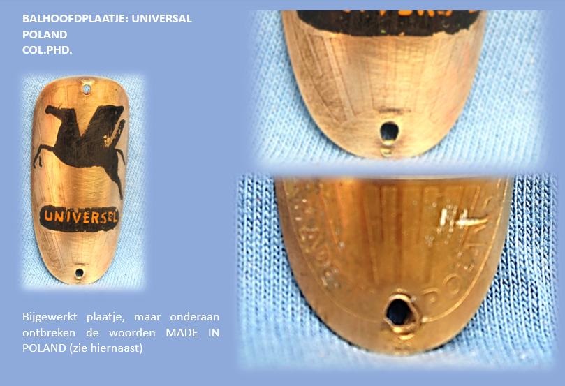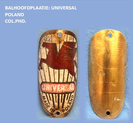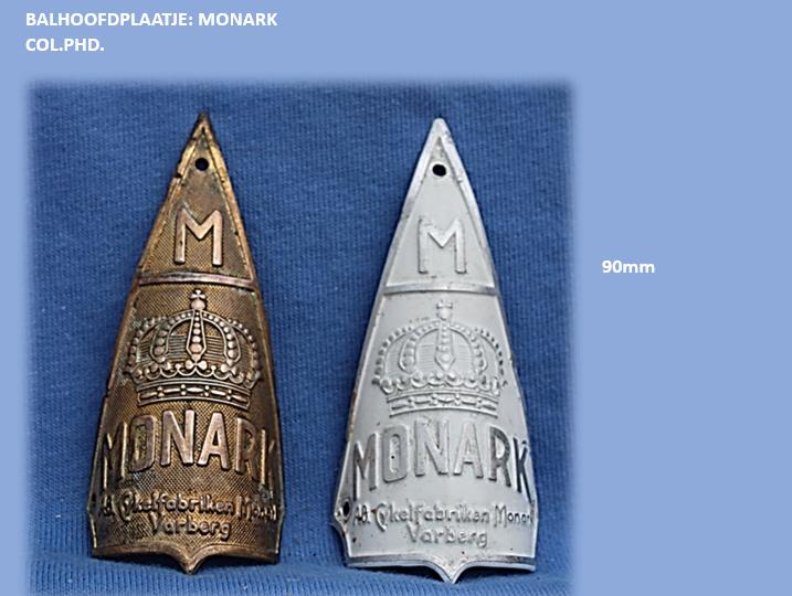 Balhoofdplaatje van fietsenhandelaar Maniel. Het bovenste aanzetstuk, met gat voor een hechtpin, van het koperen plaatje wordt geflankeerd door een vleugelmotief. Bovenaan bevat het plaatje een wit tekstkader met een opschrift, dat in blauwe letters de merknaam toont. Centraal staat er op een lichtblauwe achtergrond een gevleugeld en gekroond wiel afgebeeld. De kroon heeft rode accenten en het wiel heeft op het centrale punt een rode kleur. In de linker- en rechter benedenhoek van de achtergrond bevindt er zich een lauwertakmotief. Uiterst onderaan het plaatje is er een rood tekstkader aangebracht met een opschrift in witte letters, dat verwijst naar een serie van het merk. Net als bovenaan wordt het onderste aanzetstuk van het plaatje geflankeerd door een vleugelmotief.