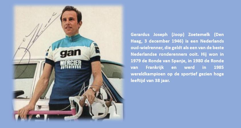 Johannes Adrianus (Jan) Janssen werd geboren in Nootdorp, op 19 mei 1940 en is één van de meest succesvolle Nederlandse wielrenners aller tijden. Jan Janssen start zijn wielercarrière in 1959 als amateur en van 1962 tot 1973 was hij beroepsrenner. Jan Janssen werd wereldkampioen in Sallanches. In 1966 eindigt hij op de tweede plek in de Tour en in 1967 zet hij de Ronde van Spanje op zijn naam.