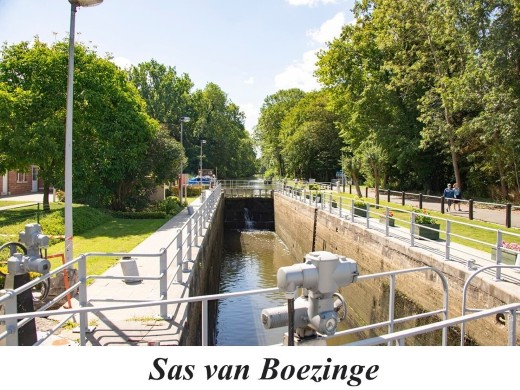 Bij het kanaal Ieper-IJzer of is het Ieperleekanaal? Moeten we over het Sas van Boezinge. Dit is een historisch sluizencomplex met verdedigingswerken. Het kanaal is 14 km vanaf Ieper tot de Knokkebrug, waar het in de IJzer uitmondt. Langs de boorden van dit kanaal fietsen is een zaligheid met een verrassend gevarieerd landschap. We rijden wat trager en zoeken de oorlogskanaalsite John McCrae. Ik weet dat er in de kanaalberm een weggetje loopt tot vlak bij de militaire begraafplaats Essex Farm Cemetery. Net ten noorden van de begraafplaats bevinden zich betonrestanten van een medische post en is een monument opgericht voor John McCrae en zijn gedicht In Flanders Fields, dat hij hier zou hebben geschreven. Er is verrassend veel volk op bezoek, het zijn allemaal Engelssprekenden, vol bewondering wat er allemaal bewaard is van die verschrikkelijke oorlog.