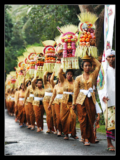 Op de foto: dames in traditionele klederdracht, met offers op weg naar de tempel voor het Odalan (verjaardags)feest. De tempel is alle 210 dagen jarig. Ambiance verzekerd.