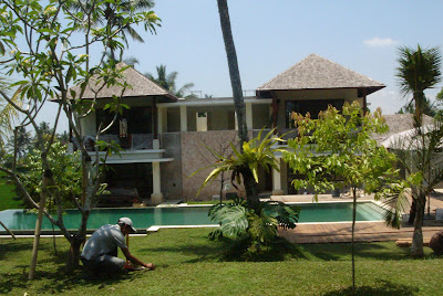 Tegenover een bekend hotel 'Ubud Hanging Gardens', staat, aan de andere kant van de vallei een grote tempel. De verantwoordelijken van die tempel hebben grof geld geëist omdat de hotelgasten in zwempak een storende aanblik boden aan de gelovigen in de tempel. Enkel al gezien de afstand tussen tempel en zwembad is het duidelijk dat dit een vals argument is. Overigens kijk ik vanuit mijn bureau uit op een afwateringskanaal aan de overkant van de sawah, en word ik daar dagelijks vergast op badende Balinezen in meer of mindere staat van ontkleding. Diezelfde goot wordt ook zonder enige gêne gebruikt als openbaar toilet. Maar waag het niet de overflow van je zwembad te lozen in een afwateringskanaaltje! Dan krijg je problemen met 'de subak', de traditionele verantwoordelijken voor de irrigatie van de rijstvelden. De verklaring is dan dat er geen water in de rijstvelden mag komen waarmee mensen zich hebben gewassen (zwemmen = wassen). Bij de blote konten waarop ik dagelijks uitkijk zal het dan waarschijnlijk niet gaan om 'wassen' maar om 'ritueel reinigen' zeker?