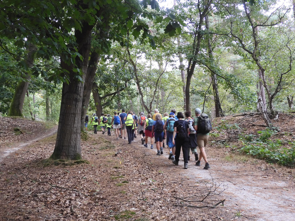 Na 'verhuis' naar Vresse, alweer de bossen in. Communicatie met de schaapjes.