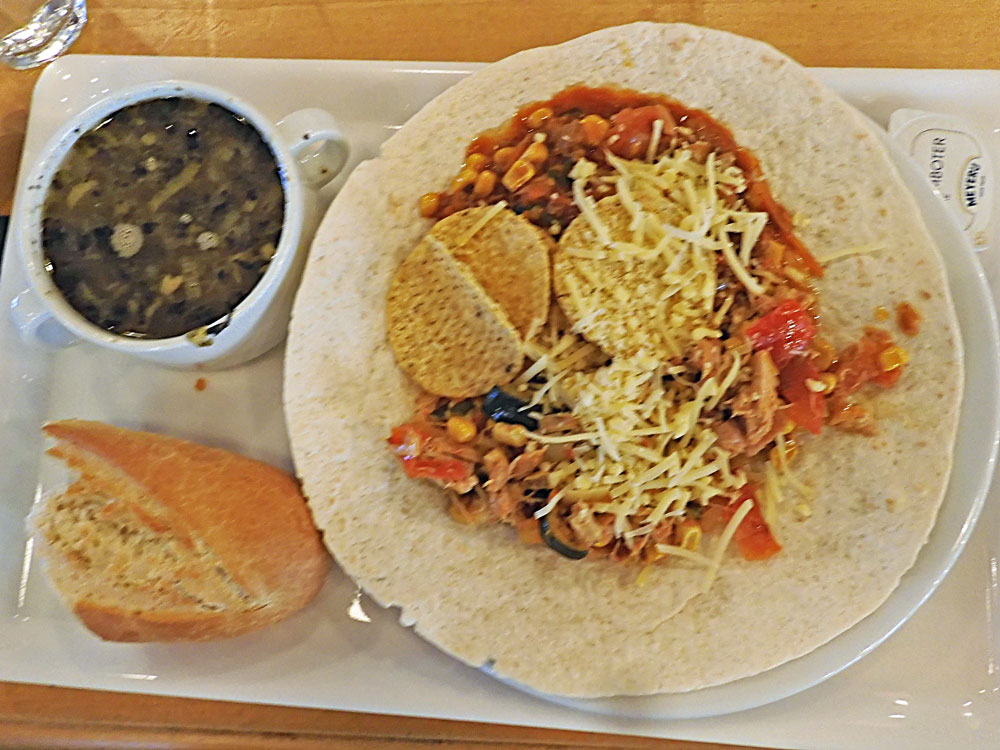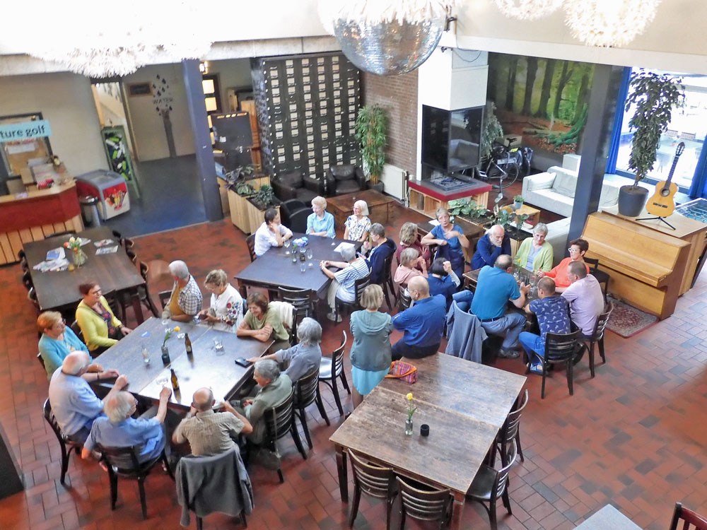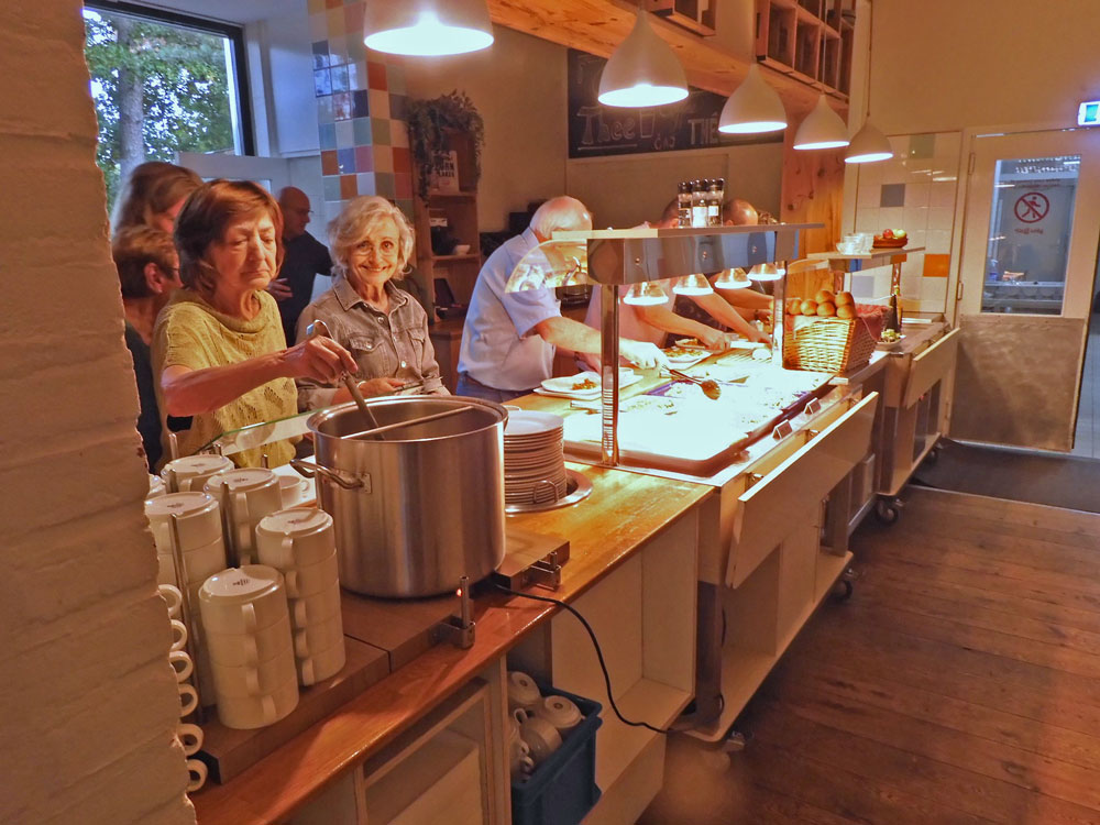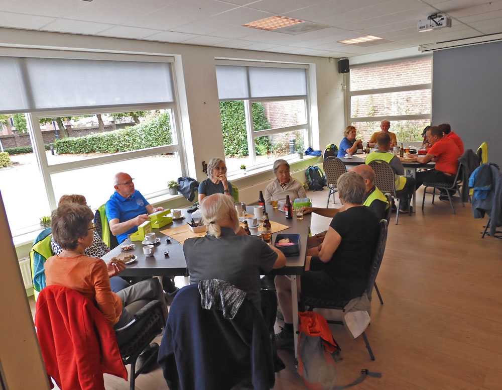 Met een klein beetje bukken lukt het wel. Lunchpauze.