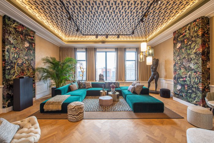 Een bekleed plafond hoeft niet puur voor de sier te zijn. Ook voor praktische zaken, zoals het verbergen van kleine scheurtjes of het verbeteren van de akoestiek, vormt het een slimme oplossing. De luxueuze en stijlvolle uitstraling die het met zich meebrengt, is dan extra mooi meegenomen. Zo transformeert Elements uit de Timber-collectie elk plafond tot een blikvanger. Het unieke patroon lijkt wel een kunstwerk van Escher: een complex spel van horizontale vlakken en verticale balken, als een stad die zich eindeloos voor je uitstrekt. Illustraties room 62 – frank tribbe – juan de mena – benedetti interieurs