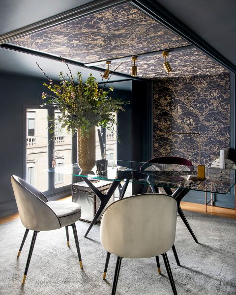 Hoe een plafond de ruimte verandert, hangt af van de keuzes die je maakt en de sfeer die je wil oproepen. Zo zet een krachtig dessin meteen de toon, terwijl een subtiele bekleding pas op het tweede of derde gezicht verrast. Creëer bijvoorbeeld eenheid door een opvallend patroon door te trekken van de muur naar het plafond. Ook contrasten aanbrengen door op een van beide een andere tint of textuur te kiezen, is een optie. Verder kan je inspelen op de architectuur van je woning door bogen, balken of moulures te bekleden. Arte's Éclat uit de collectie Les Forêts staat hoe dan ook beeldig aan het plafond. Het gebruik van kurk zorgt voor een ruwere, stoere look, die wordt getemperd door een subtiele glans, als zonlicht door een bladerdak.