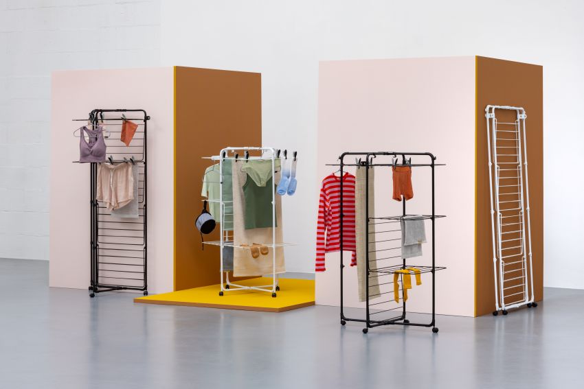 Alle modellen hebben slimme extra’s: extra haken en houders voor kledinghangers, brede draadafstand voor sneller drogen, stevige wieltjes of inklapbare vleugels, transportvergrendeling die ook als haak kan dienen. En na gebruik klap je ze eenvoudig op tot een plat pakketje dat je zo achter een deur schuift.