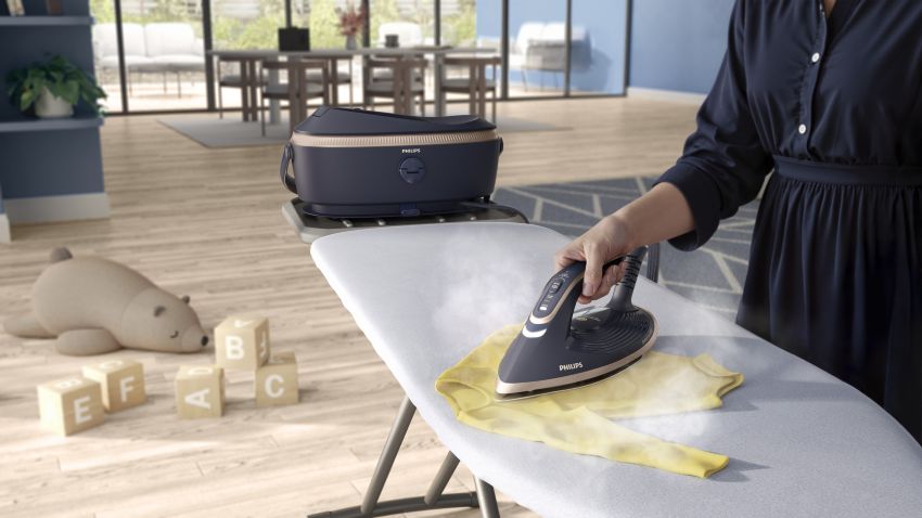 Krachtigste stoomgenerator : De stoomkracht van de Philips PerfectCare 8000 zorgt ervoor dat strijken sneller en effectiever wordt. Dankzij een continue stoomproductie tot 210 g/min en een krachtige stoomstoot van 850 g dringt de stoom diep door in de stof, waardoor zelfs hardnekkige kreuken, zoals bij linnen of dikke katoen, in één beweging verdwijnen.*** Dit bespaart niet alleen tijd, maar vermindert ook fysieke inspanning, waardoor strijken merkbaar lichter en aangenamer aanvoelt. Het resultaat? Perfect gladde kledingstukken in een fractie van de tijd. Maximale stoomkracht voor moeiteloos strijken. “Strijken wordt vaak gezien als een tijdrovende en onprettige taak. Met de PerfectCare 8000 willen we dat veranderen. Dankzij slimme technologie en krachtige stoomtechnologie kun je snel, veilig en zonder zorgen je kleding verzorgen." - zegt Charlotte D’Hoogh, Marketing Manager Philips Garment Care a.i., bij Versuni.
