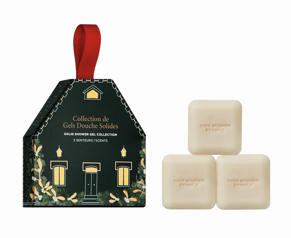 Vaste douchegels collectie: Ontdek een set van drie vaste doucgels van 25g voor een duurzame beautyroutine. Argan & roos; Bourbonvanille en Wilde algen & zeevenkel.; drie geuren voor een unieke zintuiglijke ervaring bij elke douche. Het ideale cadeau om onder (of in) de kerstboom te leggen. E9.99