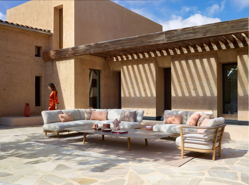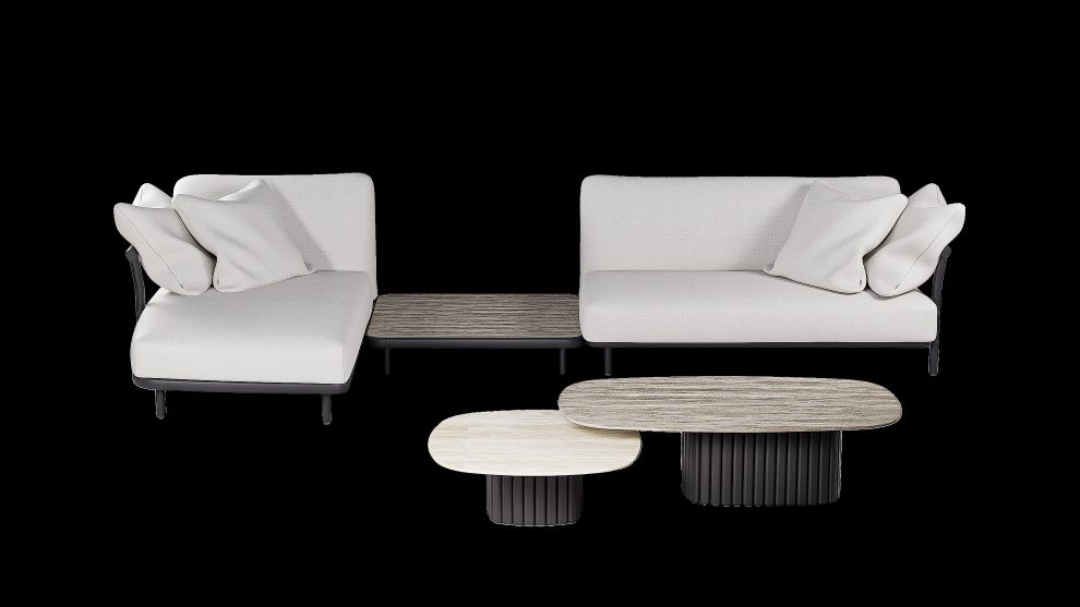 Ook op het vlak van loungen zet Archy een duidelijke stap vooruit. De collectie introduceert een nieuwe teak lounge. Dankzij het modulaire systeem laat de lounge zich vlot samenstellen: van compacte composities tot genereuze opstellingen, van intiem en subtiel tot groots en royaal. Daar past het koninklijke dagbed uit dezelfde collectie bij, waarin zowel het materiaal als de afgeronde vormen terugkomen. Het ensemble is echter pas compleet met de low lounge-tafels, afgewerkt met een blad in glas, lavasteen, keramiek of teak.