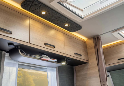 Het meubilair is doordachtig en keurig uitgevoerd. Details en robuuste bouwwijze zorgen voor een langdurig leven van de caravan.
