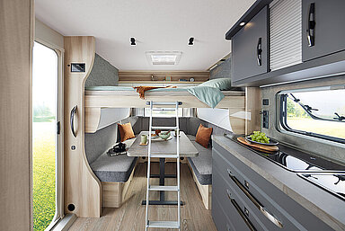 Iedereen die met meer dan twee kinderen of meerdere volwassenen wil reizen, heeft bijzonder vindingrijke oplossingen nodig als het om het interieur gaat. Dit is precies wat de Hobby DE LUXE 515 UHL biedt. Een van de vele redenen waarom het helemaal bovenaan de bestsellerlijst van Hobby staat nu het nieuwe seizoen van start gaat.