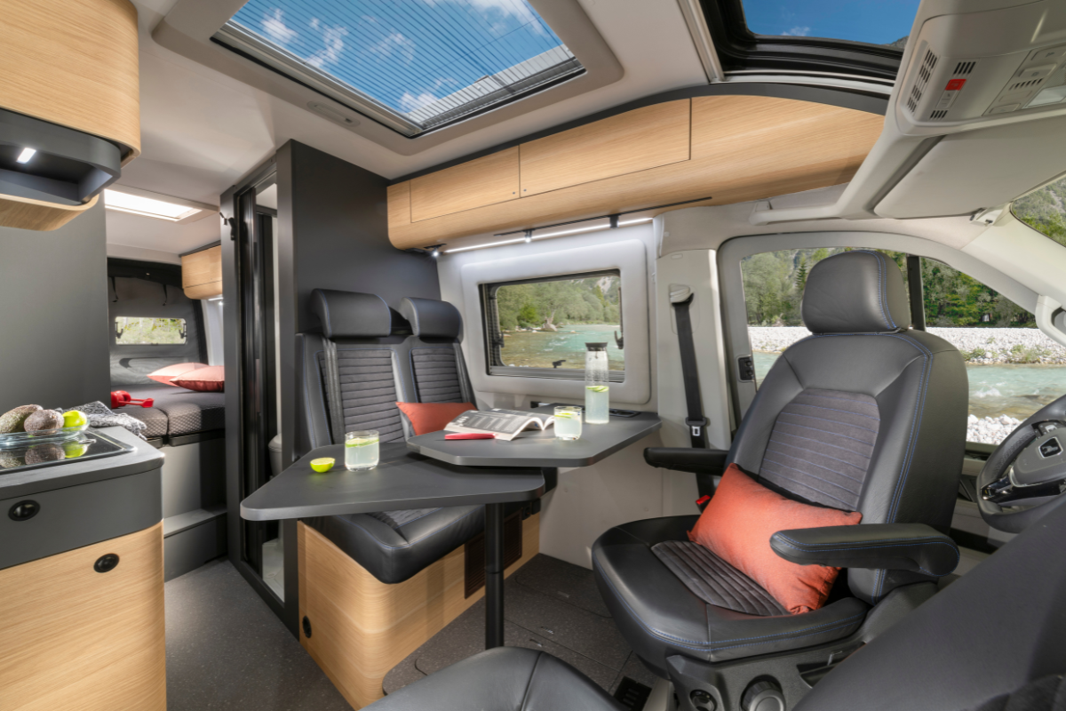 Comfortabel interieur met veel opbergruimte, ergonomische zithoek en functionele kitchenette