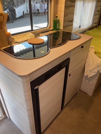 Afhankelijk van het model kan de keuken verschillen. Bijna in alle caravans hebben ze drie kookvuren en RVS spoelbak in het aanrecht geïntegreerd, afdekbaar met zwarte plaat. Samen met de onder- en bovenkast zijn voldoende bergvakken voor het keukengerief. 230 Volt en USB stopcontacten zijn niet vergeten