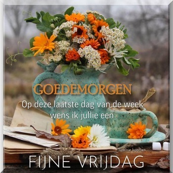We zijn de laatste dag van de werkweek vandaag en er staat ons weer een verlengd Weekend voor de deur! Joepie... ook al zegt de jonge generatie dat wij senioren iedere dag weekend hebben  we kijken er toch ook nog steeds iedere week  naar dat weekend uit!Dat is iets die in ons koppeke is blijven zitten van toen we een druk leven hadden zeker ? Och verdraaid ... dat doordenken over het hoe en waarom zetten we mooi aan de kant en genieten van het nu ... en iedere dag opnieuw nè!Geniet van je dag met ...