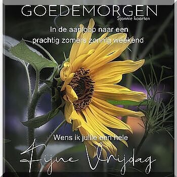 In het vooruitzicht van een zonnig Weekend kan het niet anders zijn dan ook vandaag weer een schitterende dag te worden ! Verdraaid ... we kunnen hier toch maar niet zwijgen over dat mee mooie weer dat we nu onverwacht nog krijgen al denk ik toch dat ik niet de enige ben die er zo over denkt t Bon ....genoeg geklets daarover!! Maar ... kan het toch niet laten om dit er nog bij te zetten .... " Geniet van je zonnige dag dag "