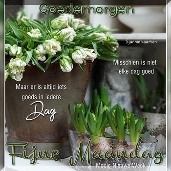 " Misschien is niet iedere dag de ganse dag goed- maar er zit altijd iets goeds in iedere nieuwe dag "! Met zoiets in ons koppeke zijn we dan ook vol moed de nieuwe week & dag gestart (ook al is het klusjesmaandag )Het is het verdraaid frisjes vandaag maar we krijgen gezelschap van een Stralende zon en dat is dan een extra bonusje voor vandaag ! Dat warme bakje troost is het nu een koffie of thee zo tussendoor zal dubbel zo goed smaken !!Maar... maar ondertussen is hier dat bakje troost leeg en wat dat wil zeggen kunnen jullie al wel raden zeker ?????.... juist !!!