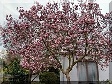 ieder jaar als die magnolia in bloei staat kan ik het ieder jaar weer opnieuw echt niet laten om Vlug met de de Gsm in de hand naar buiten te crossen voor een foto van al die mooi bloeiende bloemen ..al is zoiets met de gsm in de hand niet bepaald men ding ! Blozmzn kunnen een mens een goed gevoel geven en....zo te zien buiten is die zon op komst ???? hopelijk wel dus wens jullie een gezellige ( zonnige ?) dag!