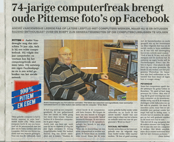 Met de steunzolen die ik heb gekregen, loop ik weer langs 's Heerens wegen, kom ik in de winkels en ook weer op het plein. Wat heerlijk zo gezond te mogen zijn. Wel gebruik ik een tabletje om in slaap te komen en over vroeger te kunnen dromen. Mijn geheugen is ook niet meer zoals het was en ik ben weer vergeten wat ik gisteren nog las. Ook heb ik wat last met mijn ogen en mijn rug raakt meer en meer gebogen. De adem is wat korter, mijn keel vaak erg droog. Maar ik ben nog fantastisch...zo op 't oog.