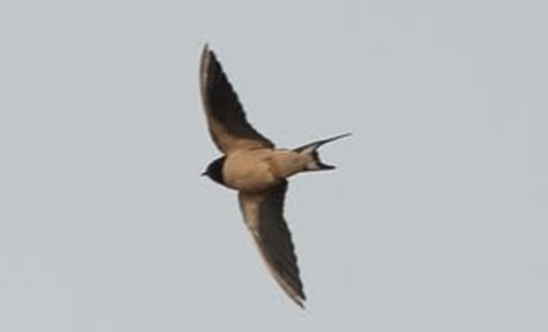 19-11-2025. Nog steeds worden er in ons land boerenzwaluwen gezien. Vandaag waren er nog twee aan het Zuidlaardermeer te zien, 1 volwassen en een eerste jaars. Op de foto de volwassen boerenzwaluw met duidelijke rui in de grote slagpennen. De buitenste grote slagpen (grijs) is nog niet geruid. Steeds vaker worden er late boerenzwaluwen gezien met slagpenrui. Normaal vindt deze rui plaats in Afrika.