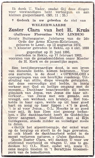 -Zuster Maria-Clara van het H. Kruis, in de wereld Florentine Van Linden.