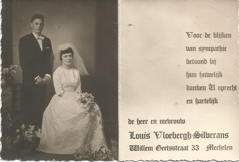 1962 – Zaterdag 5 mei : Huwelijk Chiro-leider Louis Vloebergh met B.J.B.-leidster Hilde Silverans Die dag trad Chiro-leider Louis Vloebergh in het huwelijk met B.J.B.-leidster Hilde Silverans. In “De Band” verscheen daarover volgend verslag : “Zaterdag 5 mei waren de jeugdorganisaties in feest, want zij jubelden om het geluk dat twee jeugdfiguren tegemoet gingen. Beiden zouden in den echt treden en begunstigd worden door het weertje. Tot buiten toe weerklonken de jubelliederen van de meisjes van de Landelijke Jeugd en B.J.B. bij de intrede van het jonge paar in de kerk. De huwelijksmis werd buiten de meisjes van voornoemde verenigingen ook bijgewoond door de Chirojongens met vaandels incluis. Als assistenten van de pastoor aan het altaar de huidige proost E.H. Verbist en zijn voorganger E.P. Clementiaan. Het was een eenvoudige en aangrijpende plechtigheid. Toen de twee stralende wezens de kerk langzaam verlieten als man en vrouw zagen we menig traantje wegpinken. Door de B.J.B.-leidster Mariette De Prins werd een gelegenheidstoespraak gehouden waaruit, het kon niet voldoende gezegd worden, de dank, de genegenheid naar voren kwam. Ook door een Chirojongen, een burchtknaap, werd een mooie plant aangeboden en de B.J.B.-meisjes kwamen voor de pinnen met een zeer schoon O.L.Vrouwbeeldje. En dan terwijl de orgeltonen de blijdschap ondersteunden, vertrokken onder grote belangstelling en sympathie twee gelukkige mensen. Een jongen en een meisje die het beste van hun krachten gegeven hebben, jaren lang, om de jeugd op te voeden, er wat van te maken en of ze iets bereikten ! Twee voorbeelden voor de jeugd. Louis en Hilde, dank voor wat u beiden hebt gedaan voor uw Leestse broeders en zusters, vaart veilig over de golven der bruisende zee en we wensen u beiden een “goede vaart en behouden thuiskomst”. “