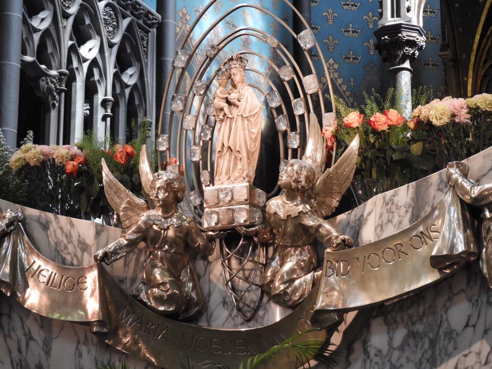 Geef mij uw goddelijke goedheid. Maagd vol van genade, Vrouwe van de glimlach, Herstel in mij de goddelijke goedheid, Leer mij te genezen wie ik heb verwond, Dat mijn lippen mogen overtromen van tederheid, Vol woorden van liefde die vrede brengen.