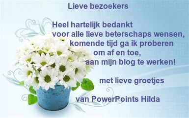 Met dank aan Josie en Ingrid die mijn blog hersteld hebben