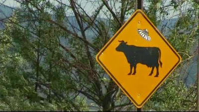 It's a mystery straight out of the X-Files. Driving down the highway from Taos to Santa Fe, you'll see them. Just one of the many places they've appeared around New Mexico. UFO stickers placed on cattle crossing signs, giving the appearance "aliens" are beaming the cows up.