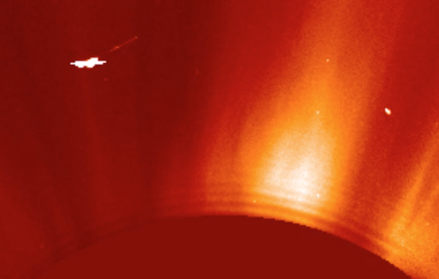 Eyewitness states: The amazing detail on this object tells me that it's not a CME or a Star. It may well be malformed pixels that have formed into something resembling a space craft. Happens all the time - NOT. The link is above. Streetcap1.