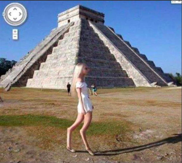 This sounds like an amazing sighting, and I have never heard about it before. Any info about tall whites helps a lot. The police officer says that they moved oddly, which the do, because the shape of their leg (from the knee down) actually goes opposite direction from ours, but some kind of holo-emitter makes it appear human like, but they still cannot mask their odd walk. Here is an example of a real tall white youth caught by the Google Earth camera at a Mexico pyramid. Its since been deleted by Google but still exists on the net. Notice her legs? Those are the legs of a tall white, and her size says she is under 400 years old. Above 400 they grow another meter tall, until about 700 where they die a natural aged death. Scott C. Waring www.ufosightingsdaily.com