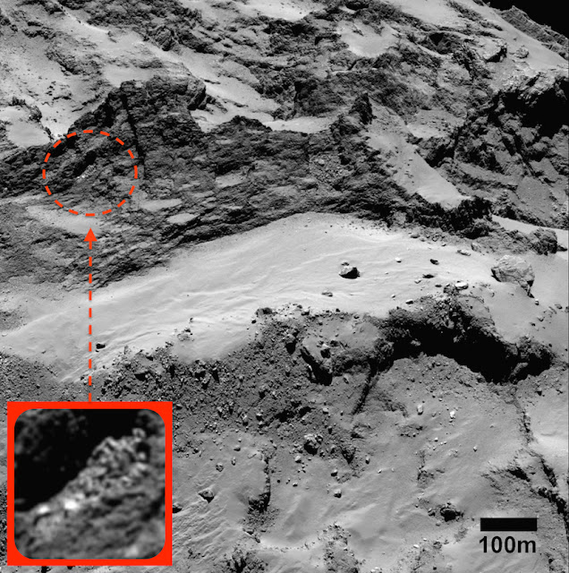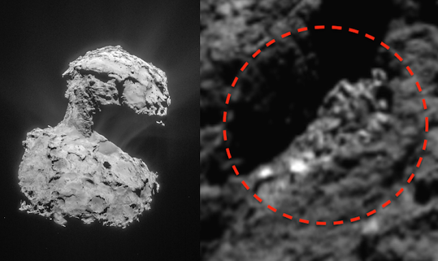 Date of discovery: September 3, 2015 Location of discovery: Comet 67P, at Serqet and Nut Source photo: