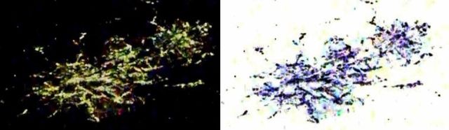 The original light went out and a luminous beam from it began to rotate. It remained like this for approximately two minutes. Then an intense great halo of yellowish and bluish light developed, and remained in the same position for 40 minutes, even though the original phenomenon was no longer visible. Two minutes after the great halo, the light split into two parts, the smaller part being beneath, in the center of the luminous halo, where a blue cloud appeared and the part from which the bluish nucleus had come, vanished. The upper part began to climb in a spiral, rapid and irregular, and finally vanished. None of these movements affected the initial circular halo in any way, which remained just the same the whole time, its glow lighting up parts of the land and the ocean, from which we could deduce that the phenomenon was not very far away from us, but was close.