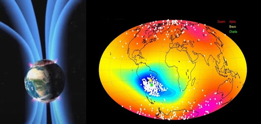 According to spaceweather, launched in November 2013, Swarm is a constellation of 3 identical satellites flying in formation around Earth. They are equipped with magnetometers, star trackers and other instruments, which allow the satellites to make exquisitely detailed 3D measurements of Earth's magnetic field. The possible splitting of the Anomaly is just one of the mission's many significant findings.