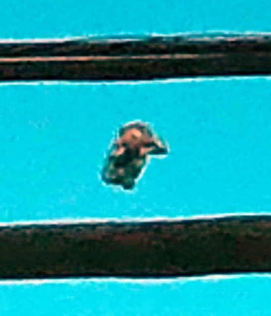 Also there is a pinkish face peeping out of the object, and in other screenshots the face also has a small body. I believe this object has a living pilot flying it. Meaning its not an alien drone, but a real alien spaceship. Small be it, but nevertheless a piloted craft.