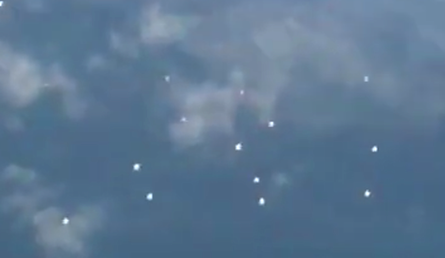 Wow, this is a rare sight. Its a alien mother drone. Thats a drone that actually makes other smaller drones to seed the sky. The mother drone is diamond in shape at the center. Look at the close up screenshot I made at the top of this post. It produced about 100 smaller alien AI controlled drones. These are drones that are dropped off, then after a certain amount of weeks, they will be picked up at a specific location again and taken back to the home world so that the data the drones gathered could be studied. Scott C. Waring - Taiwan
