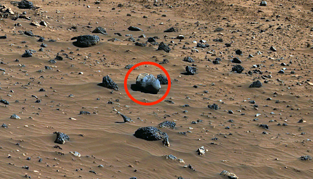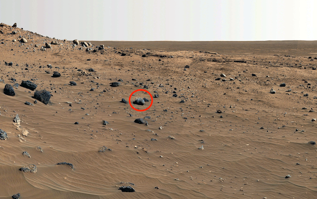 This first photo, as is the case with many photos taken by various rovers and satellites, lacks anything identifiable that could lend perspective and size to the image. That frees the imagination to, as some commenters suggest, see these objects as ants, perhaps giant alien ants. After all, that does seem to be a hill in the background. However, most agree that these are just rocks – although it seems a bit sacrilegious to refer to Martian rocks as “just rocks.”