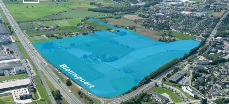 Het terrein krijgt een nieuwe weg die aansluit op de Expresweg, maar er komen ook fietspaden en een wandelnetwerk, zodat alle bedrijven vlot en aangenaam bereikbaar zijn voor traag verkeer. Werknemers en bezoekers parkeren in een collectief parkeergebouw. Het terrein wordt waterneutraal ontwikkeld met Europese steun, met extra infiltratievoorzieningen en een bekken voor hergebruik van regenwater, wat zowel de industrie als de landbouw ten goede zal komen. Over de inrichting van een ruime groene corridor tussen het bedrijventerrein en de aanpalende woningen hebben we eerder al afgestemd met de directe buren. De infrastructuurwerken zullen na de zomer van 2026 starten en de eerste bedrijven zullen we hier vanaf het najaar van 2027 zien verschijnen. Het historische poortgebouw - waar de site haar naam aan dankt - en de omwalling van de Blauwpoorthoeve blijven behouden in een blauw-groene zone. Intussen kijken we of bestaande en/of nieuwe hoevegebouwen aanvullende functies kunnen krijgen.