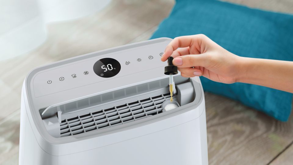 De Philips 3000 Series luchtontvochtiger met aromafunctie verwijdert tot 34,3 liter vocht per dag, ideaal voor grotere ruimtes, en verfrist de lucht dankzij de toevoeging van essentiële oliën.