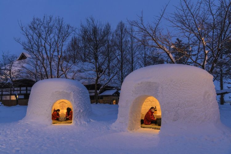 In februari wordt in Yokote City in Akita Prefecture het eeuwenoude Yokote Snow Festival gehouden, een traditie die al meer dan 450 jaar bestaat. Tijdens het festival worden door de hele stad ruim tachtig kamakura-iglo’s gebouwd, samen met talloze kleinere varianten. In elke kamakura staat een klein altaar ter ere van de watergoden, met offers zoals sake en rijstcake. Bezoekers worden door locals uitgenodigd om binnen in de iglo’s plaats te nemen en samen amazake en rijstcakes te proeven.