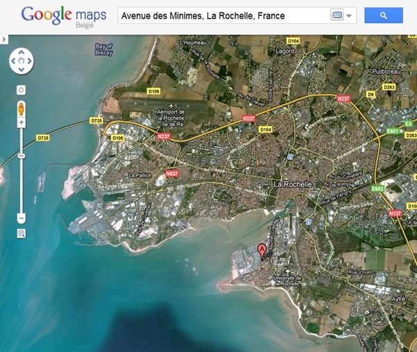 Zoals voorspelt wordt het weer vandaag ook niet beter als de vorige dagen. Een grijse lucht als we opstaan en bij het ontbijt tikken de eerste regendruppels al op het dak. Nog 235 km te gaan tot op onze bestemming. Via Saumur, Thouars en Niort en de nodige stops onderweg, zoals o.a. op een picknickplaats in Montreuil Bellay, komen we uiteindelijk toe in het departement Charente Maritime. Het mooie LA ROCHELLE is de hoofdstad. Dit is de tweede keer dat we deze stad inrijden. In één van onze vorige reizen waren we op zoek naar een parking en na vele straten in en uitzijn we de stad uitgereden. Nu hebben we een goede voorbereiding gemaakt en alle gedoogde parkings opgezocht. Dus geen problemen deze keer.Een eerste verkeersbord doet ons al twijfelen "In juli en augustus geen doorgang via de Vieux Port na 20 u". Is het nu toch niet 20.10u ! Geen omleidingsborden, smalle één richting straatjes en met een GPS die tilt slaat blijven we een uur ronddolen en geraken we niet aan de parking. Centrum terug uitgereden en via de andere kant terug en uiteindelijk leidt de GPS ons toch nog naar het juiste adres Avenue des Minimes, gelegen aan de grootste plezierjachthaven van Europa (parking tegenover l'école hôtelière et l'auberge de Jeunesse en uitsluitend beschikbaar in de maanden juli en augustus). We vinden toch nog 2 plaatsen en onder de zoveelste regenbui gaan we de nacht in en hopen we op een zonnestraaltje als we morgen wakker worden.