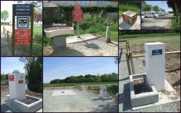 We zetten onze ontdekkingstocht in deze buurt verder en komen aan op de camperplaats in SOUBISE, deze is tevens ook gelegen op de oevers van de Charente. Een mooie verzorgde parking met zicht op de kleine jachthaven (rue Colbert, rue du port) service en parking 6,50/24u incl. electriciteit, drinkwater, lozen afvalwater en cassettes, evenals het gebruik van douches en sanitair in het gebouw van het havenkantoor. Het zonnetje schijnt volop, het is warm, dus eindelijk de tijd voor een BBQ. Maar eerst de omgeving hier is verkennen. Aan het haventje is het heel rustig. Bootjes liggen nu gedeeltelijk op het droge door het getij. In de verte zien we de hoge brug van Rochefort met daarachter de pylaren van de Pont transbordeur (beschrijving volgt later). Het centrum ligt iets hoger en via een steil straatje komen we aan een pleintje met de kerk, het gemeentehuis en ook het office de tourisme. Plannetje halen en verder. Via het oude centrum met zijn typische oude franse huisjes komen we in het nieuwe moderne centrum. Veel is er niet te zien maar het is wel een gezellig en verzorgd dorpje. Soubise heeft maar een opp. van 10,9 m2. Eindelijk kunnen we is buiten eten. De tafeltjes en stoelen worden buitengezet. Met de hele familie bij elkaar smaakt de BBQ, met koude aardappeltjes en groentjes heerlijk en de grote afwas, die doen we samen aan de voorziene afwasbak aan het havengebouw. We kunnen nog tot laat in de avond van de buitenlucht genieten met een mooi zicht op de verlichte brug.