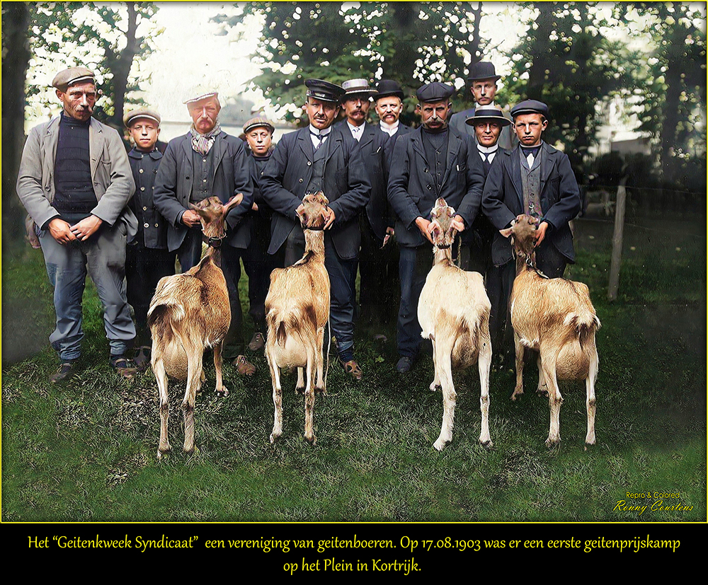 Begin 1900 verenigden de geitenhouders van Kortrijk zich in het Geitenkweek-Syndicaat Kortrijk, waarna op het Plein de allereerste geitenprijskamp werd georganiseerd. Niet minder dan 670 dieren namen eraan deel. Door de instroom van goedkoop Amerikaans graan, aangevoerd met stoomschepen en -treinen, kwamen kleine landbouwers economisch onder druk te staan. Veel van hen schakelden daarom over op geiten en schapen, het zogenoemde vee van de gewone man.