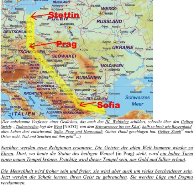 Op een zomerse dag waarschijnlijk in juli, wanneer de olieregio al stevig in Russische handen is, zullen ze de aanval van het oosten naar het zuiden en de noordelijke flank lanceren, van Turkije naar Griekenland, Joegoslavië en Scandinavië. Erna zegt in juli en dat komt overeen met wat Aloïs zei als het koren rijp is. Begin van dat jaar zullen ze met tanklegers doordringen tot het centrum van Frankrijk, waarschijnlijk Lyon, en Ulm even later vernietigen. Half augustus zullen Russische elite-eenheden uit Alaska Amerikaanse steden aanvallen met kernwapens.