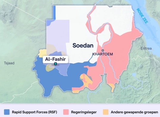 Het regeringsleger controleert op dit ogenblik het grootste deel van het noorden en het oosten van het land. De RSF domineren op hun beurt het zuidwesten van Soedan. Bijna heel Darfoer en een groot deel van de aangrenzende regio Kordofan valt onder de controle van de rebellen.
