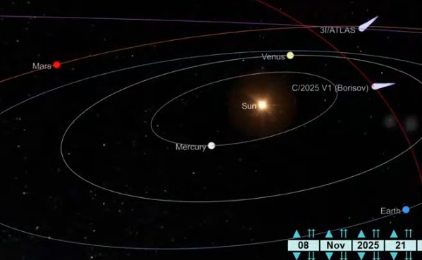Er is zojuist een nieuw object ontdekt, direct tussen 3I/ATLAS en de aarde, genaamd C/2025 V1 BORISOV. Is het een sonde van 3I/ATLAS of een nieuwe komeet?